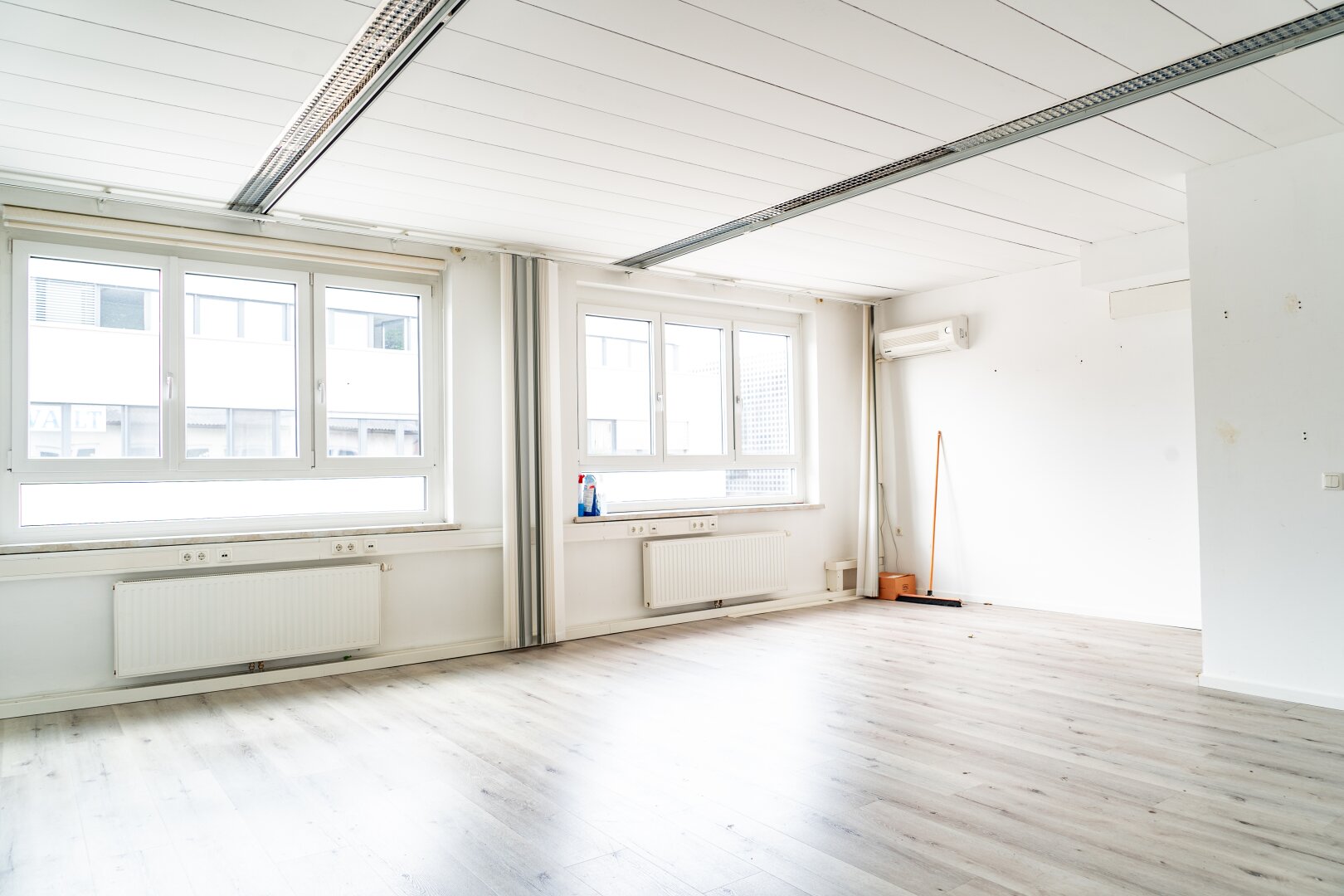 Dieses Büro liegt direkt im Neuhofner Stadtzentrum und bietet einen perfekten Blick auf die belebte Straße. Die Fenster sind 3-fach Verglast und die Räume sind mit Klimaanlage ausgestattet. Im Mietpreis sind Heizung und Stromkosten mit einbezogen. Es gibt im oberen Stockwerk eine Gemeinschaftsküche sowie ein WC. Ein Außenparkplatz kann für zusätzlich € 70.- erstanden werden. Die beiden Büroräume sind durch eine Glaswand getrennt.