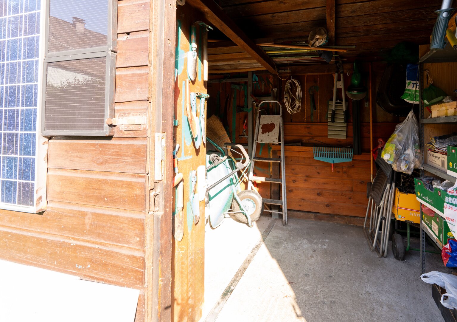 Der Garten ist ein echtes Highlight: Auf rund 711 m² genießen Sie Ruhe, eine wunderschöne Aussicht und viel Grün. Eine kleine Gartenhütte bietet praktischen Stauraum für Gartengeräte, Liegestühle und Rasenmäher. Hier können Sie entspannte Stunden im Freien genießen, umgeben von Natur und Privatsphäre.
