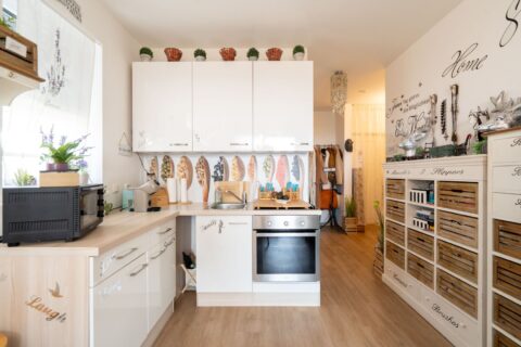 Diese stilvolle Garçonnière-Wohnung bietet auf ca. 33 m² eine kompakte und gut durchdachte Raumaufteilung. Der helle Wohn-/Schlafraum mit integrierter Küche bildet das Herzstück der Wohnung. Von hier aus gelangen Sie direkt auf die Terrasse, von der aus Sie eine schöne Aussicht sowie einen angenehmen Blick ins Grüne genießen können. Die Wohnung verfügt über eine praktische Garderobe im Eingangsbereich sowie ein Badezimmer mit WC. Beheizt wird die Wohnung mittels Gaszentralheizung, zusätzlich sorgt eine Fußbodenheizung für angenehmen Wohnkomfort. Ein Kellerabteil ist der Wohnung zugeordnet und bietet zusätzlichen Stauraum. Im Kaufpreis sind zudem zwei PKW-Stellplätze enthalten (1× Carport, 1× Außenstellplatz). Für die Stellplätze fallen monatliche Kosten von € 17,75 brutto sowie € 18,56 brutto an. Die Wohnung ist derzeit vermietet, der Mietvertrag ist bis zum 29.02.2028 befristet. Die Wohnung eignet sich daher besonders gut als Anlageobjekt. Ein Personenaufzug ist im Gebäude nicht vorhanden. Die jährliche Nettomiete beträgt EUR 5.040-,