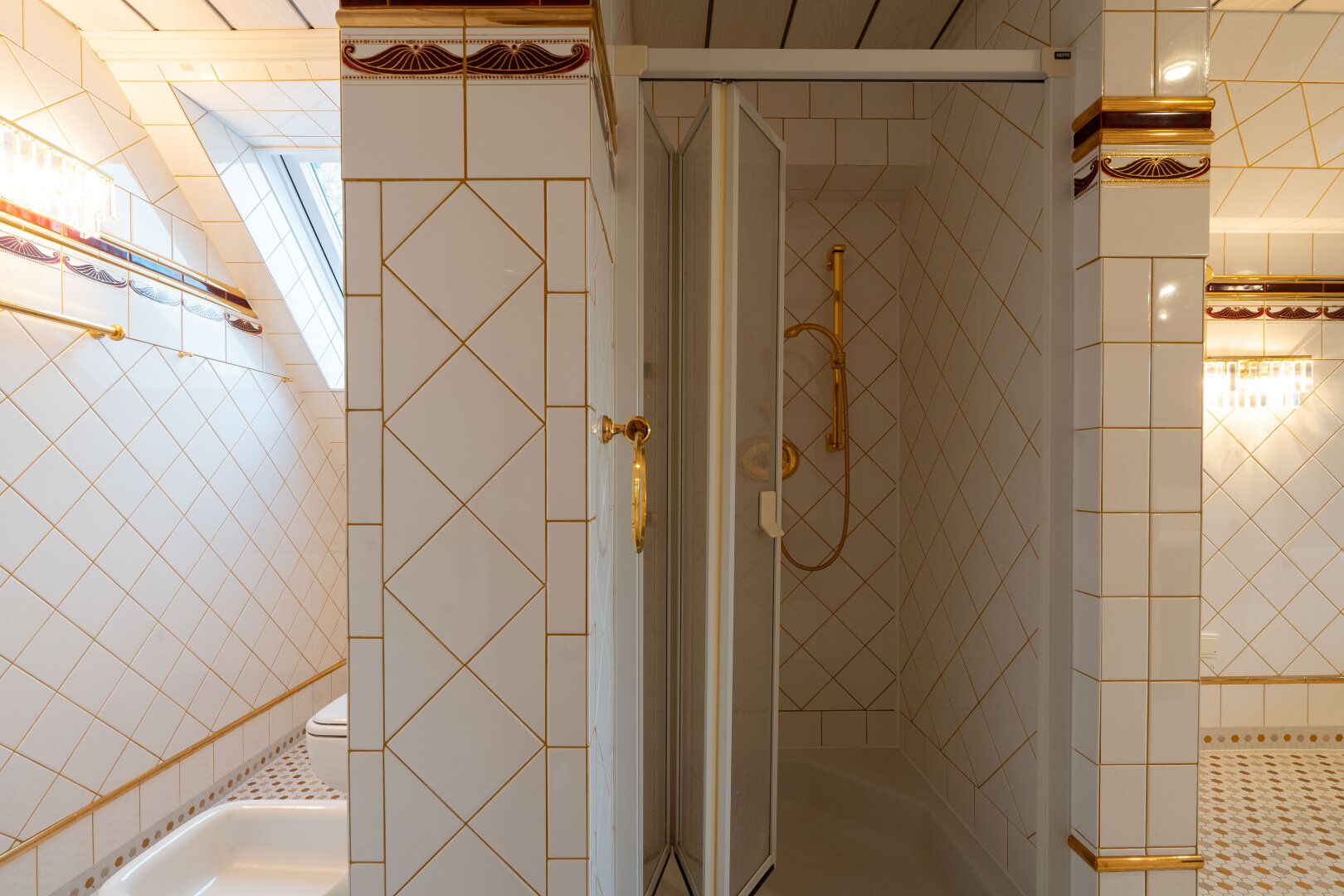 Bad mit Fenster, Dusche, Badewanne