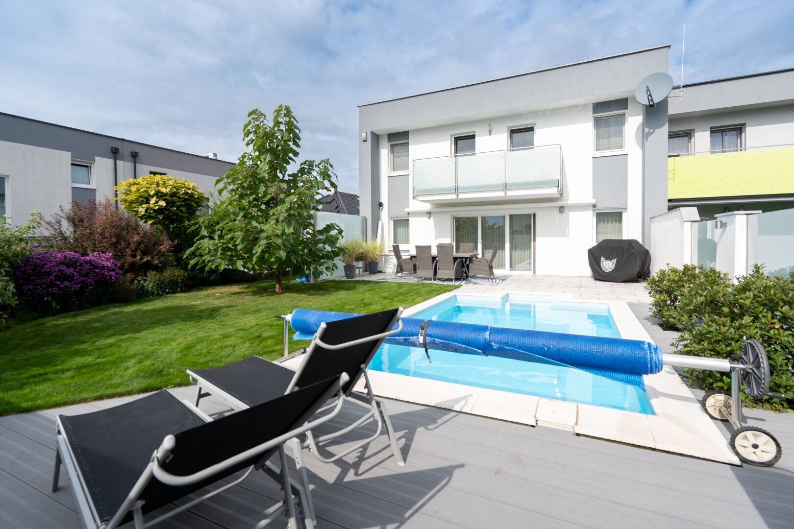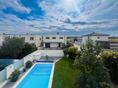 **VERKAUFT** PROVISIONSFREI - Traumhafte Doppelhaushälfte in Rutzing –  mit Pool, Kamin und Garten!