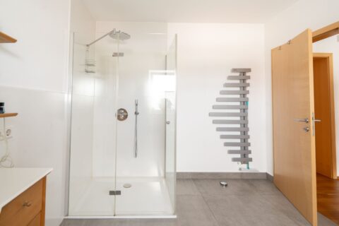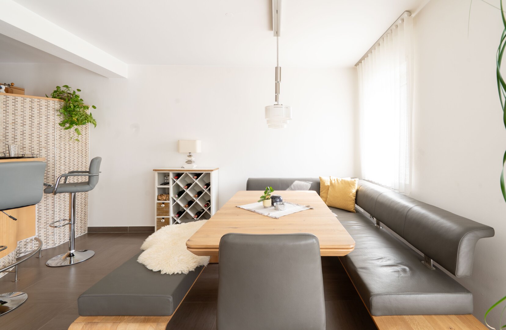 In Rutzing gelangt eine moderne Doppelhaushälfte mit rund 125 m² Wohnfläche auf einem 351 m² großen Grundstück zum Verkauf. Das Haus besticht durch eine durchdachte Raumaufteilung, hochwertige Ausstattung und zahlreiche Extras, die ein komfortables Wohnen ermöglichen. Im Erdgeschoss erwartet Sie ein großzügiger Wohn- und Essbereich mit Kamin, der für eine angenehme Atmosphäre sorgt. Von hier aus gelangen Sie auf die Terrasse und in den Garten – ein idealer Platz zum Entspannen oder für gesellige Stunden mit Familie und Freunden. Die Küche der Marke Breitschopf überzeugt durch modernes Design und praktische Ausstattung. Ergänzt wird das Raumangebot dieser Ebene durch ein Gäste-WC sowie den Technikraum und einen Abstellraum. Im Erdgeschoss befinden sich ebenfalls die 2 Carport-Stellplätze. Eine Wallbox ist ebenfalls vorhanden. Das Obergeschoss bietet drei helle Zimmer, die sich als Schlafzimmer, Kinderzimmer oder Büro eignen. Das Badezimmer ist mit Badewanne, Dusche und Doppelwaschbecken ausgestattet und erfüllt höchste Ansprüche an Komfort. Besonders attraktiv ist der Außenbereich: Ein Pool mit den Maßen 5 x 3 Meter und einer Tiefe von 1,60 Metern sorgt für Erfrischung an warmen Tagen, die Terrasse mit elektrischer Markise bietet zusätzlichen Wohnkomfort. Ein Brunnen erleichtert die Gartenbewässerung. Auch technisch ist das Haus auf einem modernen Stand. Eine Luftwärmepumpe in Kombination mit Fußbodenheizung und Wohnraumlüftung sorgt für ein angenehmes Klima. Sicherheitsbewusstsein unterstreichen die installierte Alarmanlage und die 3-fach verglasten Fenster.